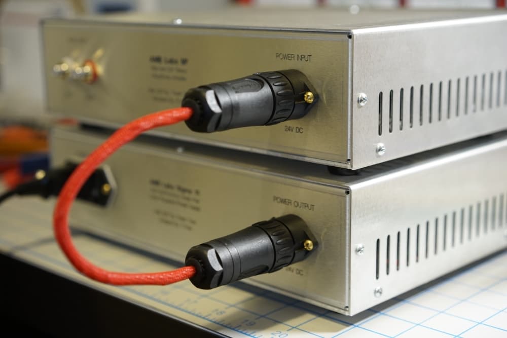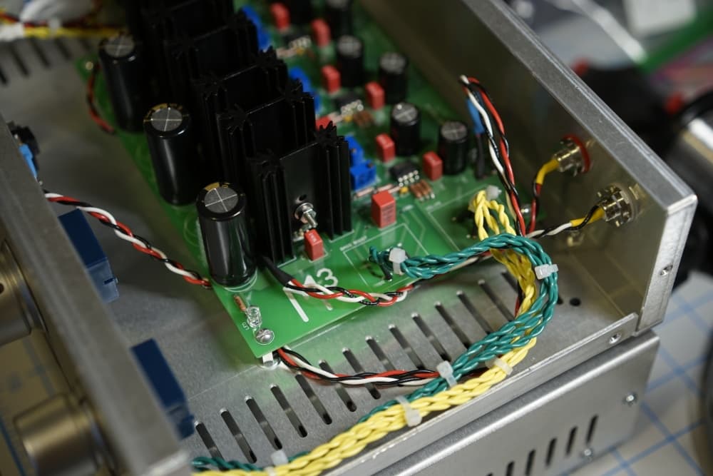Next, I had to securely mount all of the PCBs and parts to the enclosures and then the amplifier and power supply enclosure and panels are completely assembled. Note: the umbilical power cord delivering the 24VDC was custom made using Amphenol connectors. Using those connectors were a complete overkill but I didn't care, I wanted something really nice.