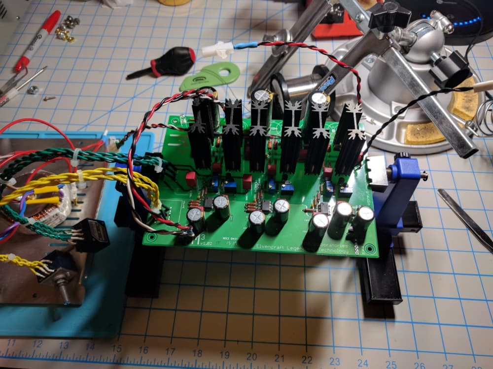 So, let's get started. First, I had the M3 PCB completed and cleaned. Afterwards, I finished the A11 power supply PCB and wired everything accordingly to the transformer. There's a relay switch near the bottom of the photo which is used along with the Epsilon 24 (next to the PSU pcb) for controlling the power.